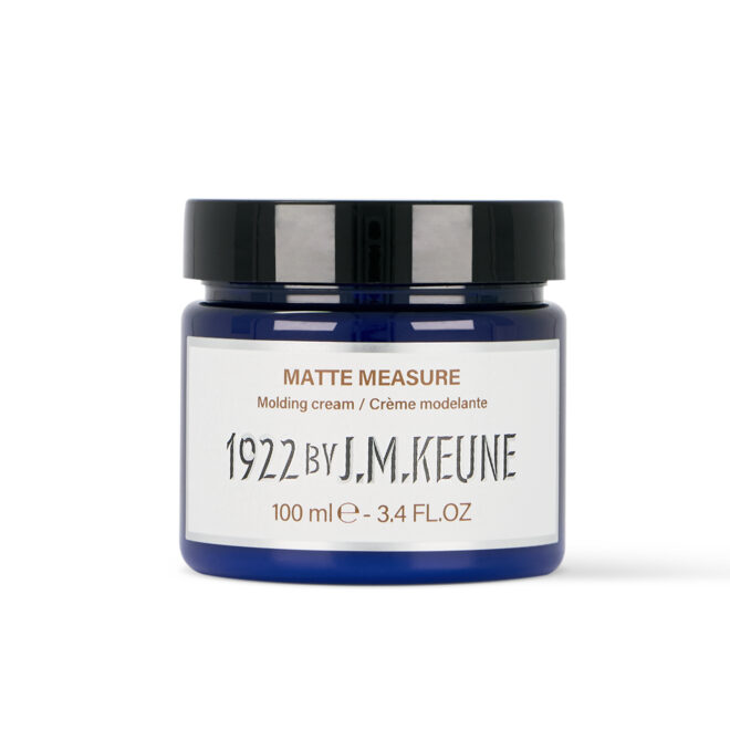 1922 By J.M. Keune Matte Measure on monikäyttöinen muotoiluvoide, joka tarjoaa keskivahvan pidon ja luonnollisen mattapinnan. Se sopii erityisesti tekstuurin luomiseen ja helposti muotoiltaviin, rennon huoliteltuihin kampauksiin.
